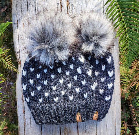 If you would like your toque without a pom pom, please type "No Pom" in the space provided for pom pom option. Click here for a closer look at our faux fur pom pom options.
