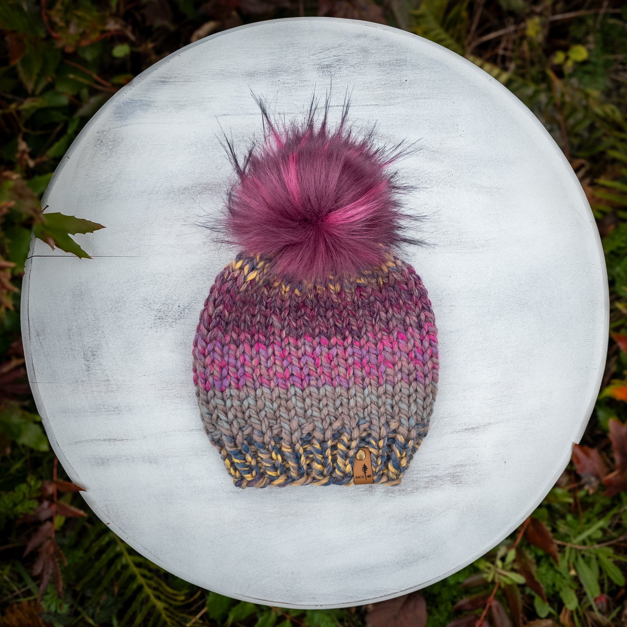 Classic Beanie in Astroland with removable Berry faux fur pom pom. Want a different pom on this toque? Leave a note at checkout.